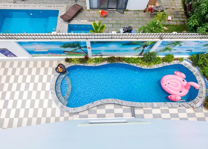 Located within a 7-km distance of Duc Me Bai Dau Shrine, the 10-room Hoang My Villa - 12 Phong Ngu - Free Bida Karaoke Thang May boasts a saltwater pool with a Turkish steam room, a plunge pool, and a Turkish bath. Featuring a terrace, this beachfront accommodation is situated at a moderate distance from Cong Khu du lich Chi Linh.